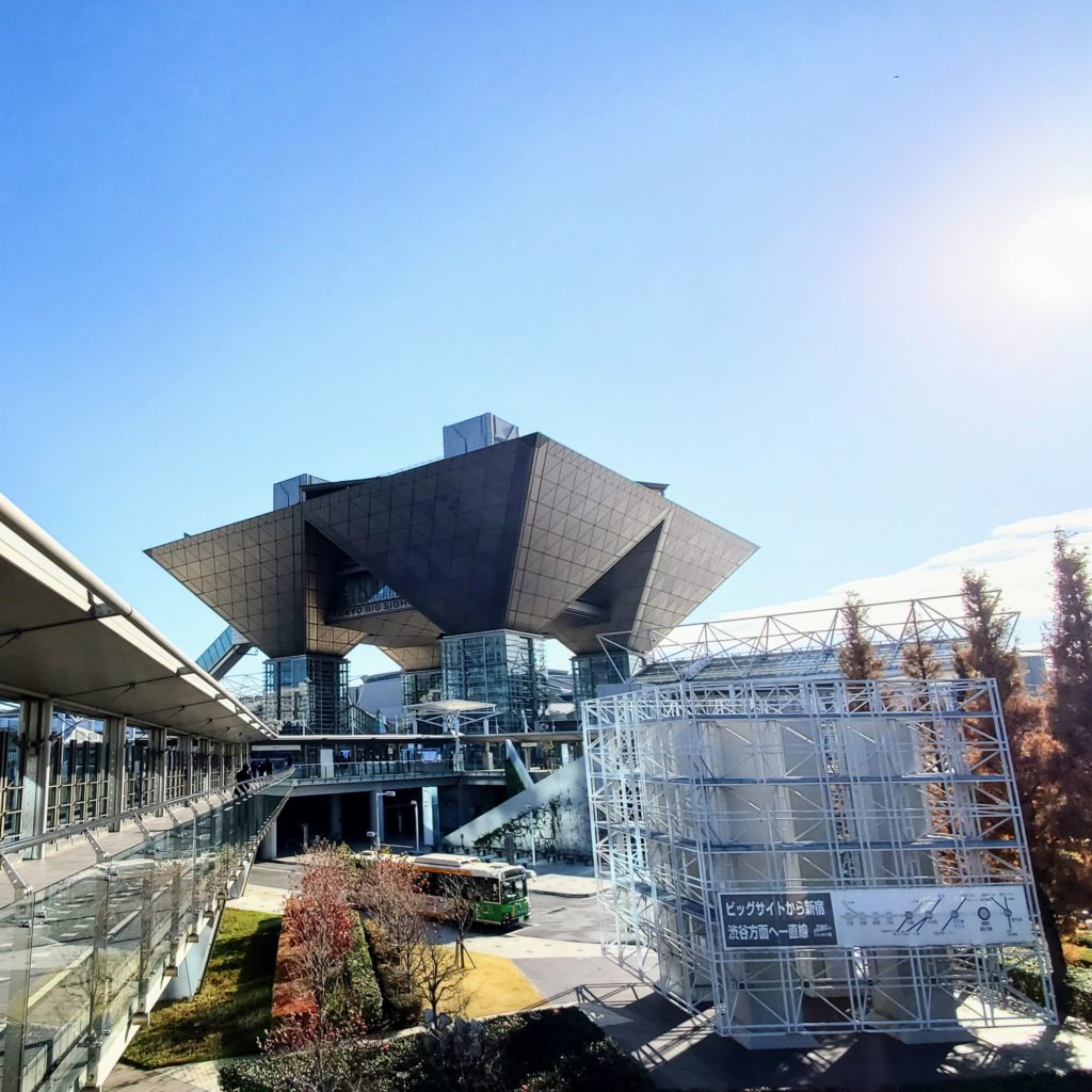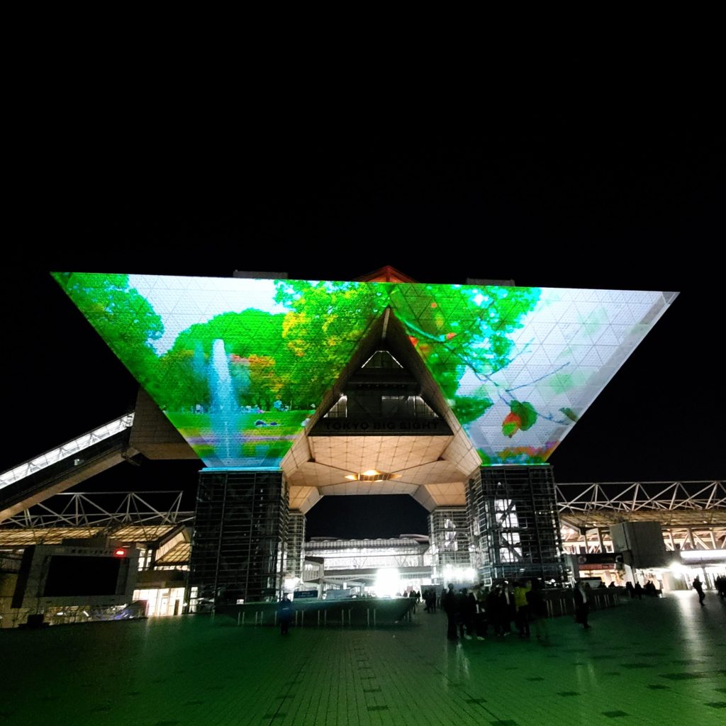 今日の片づけを終え、会場から出てくると、カメラを構えた方が大勢いるので、振り向くと・・・すごい演出にしばし釘付けになりました。