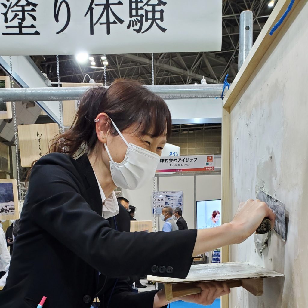 全国左官第三位の左官職人を育成した師匠の登場に合わせて来場してくれたお客様が多数、昨日に引き続き来場されてくれた方、東京ビッグサイト内での隣のイベントから訪ねてくれた方も多数、一日中盛り上げていただきありがとうございました。