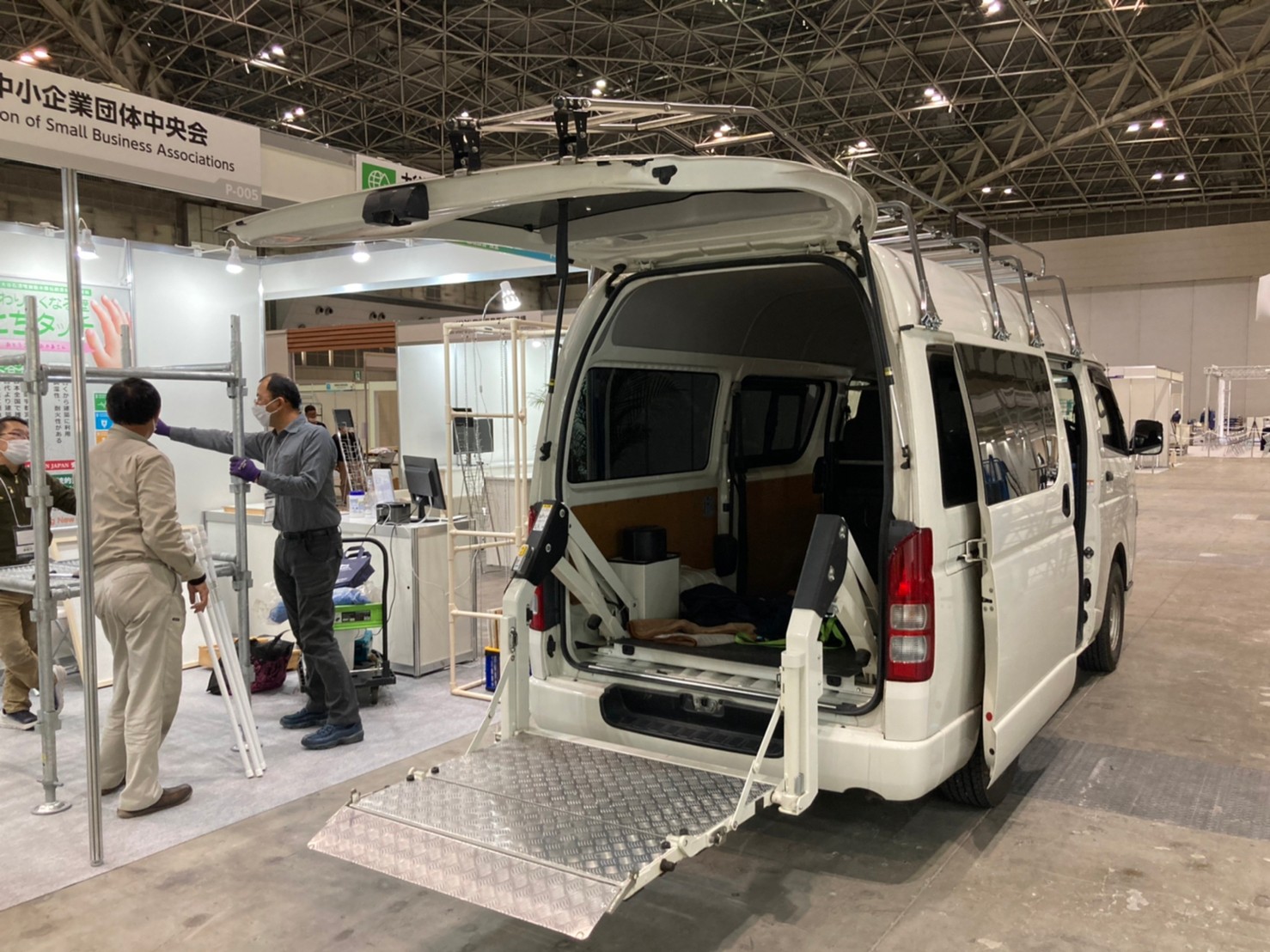 搬入には2台の車~新価値創造展アルバム ブログ 2021.12.14 展示会前日は時間を区切られてですが、ブース前まで車を乗り入れることが出来ました、なんでも積めちゃいそうな、サンダーバード2号みたいな車が1台・・。(12月7日の写真です)