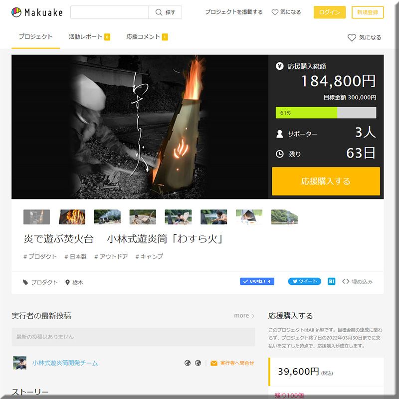 「とちタッチ」と共に研究し合ってきた仲間のロケットストーブ「わすら火」がマクアケスタート!