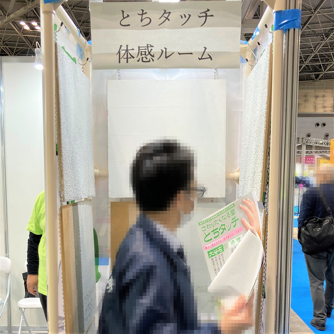 とちタッチ体感ルームで、漆喰&大谷石効果に驚く方も次々に現れてくれますが、みなさん言葉が出てこないようです。